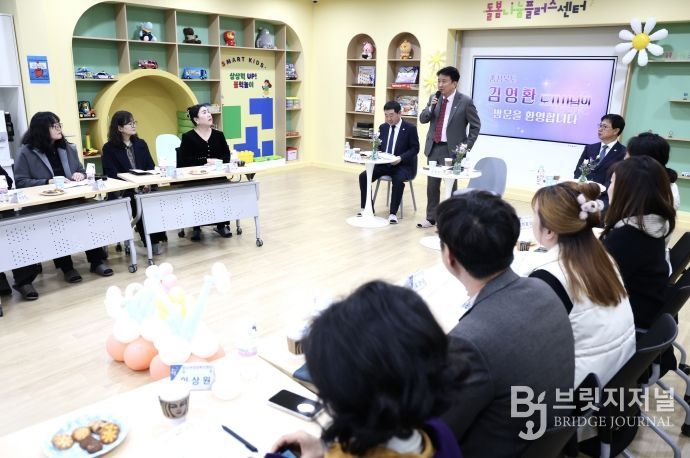 이후 김 지사는 아동 돌봄 거점 기능과 주민 참여 기반의 통합돌봄 체계 구축을 위해 지난해 운영을 시작한 ‘돌봄나눔플러스센터’를 방문해 아동·청소년 돌봄 관계자 10여 명과 함께 증평군 돌봄 정책의 방향에 대해 의견을 나눴다.