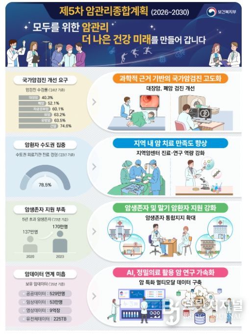 브릿지저널 김경미 기자 | 보건복지부는 2월 24일 국가암관리위원회(위원장: 이형훈 제2차관)를 개최하여, 「제5차 암관리종합계획(2026~2030)」을 심의ㆍ의결했다.