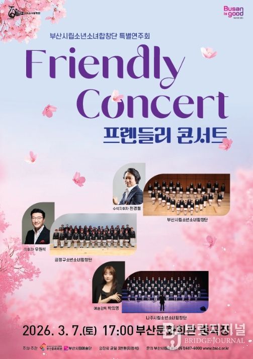 브릿지저널 윤나영 기자 | 부산시립소년소녀합창단이 청소년 합창단 간 교류와 우정을 나누는 특별연주회 '프렌들리 콘서트(Friendly Concert)'가 오는 3월 7일 오후 5시, 부산문화회관 중극장에서 개최된다.