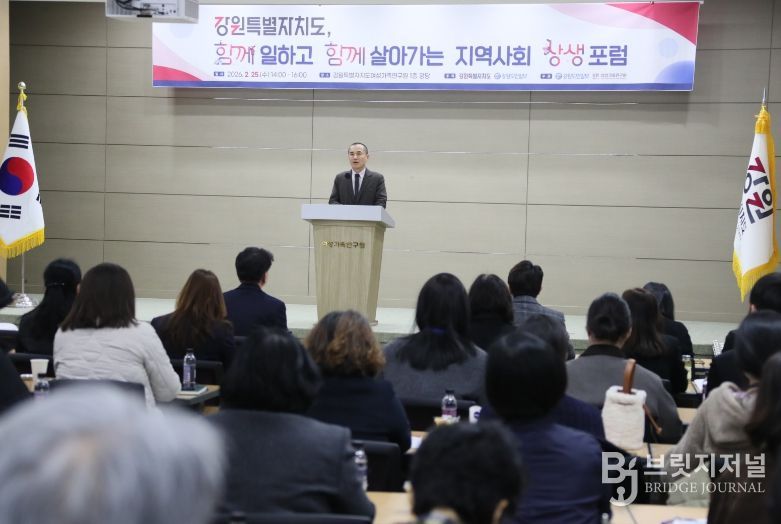 브릿지저널 윤나영 기자 | 강원특별자치도는 2월 25일 강원특별자치도여성가족연구원 1층 강당에서 강원특별자치도와 강원도민일보가 공동 주최하고, 강원특별자치도여성가족연구원과 강원도민일보가 주관하는 '강원특별자치도, 함께 일하고 함께 살아가는 지역사회 상생포럼'을 개최했다.