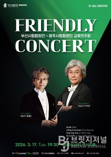 브릿지저널 윤나영 기자 | 부산시립합창단(예술감독 이기선)은 오는 3월 17일 오후 7시 30분, 낙동아트센터 콘서트홀에서 '부산-광주시립합창단 교류연주회 프렌들리 콘서트(Friendly Concert)'를 개최한다.