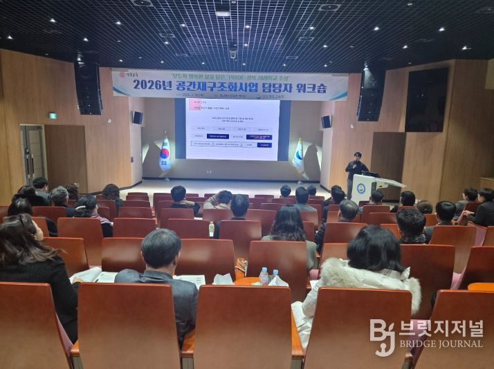 브릿지저널 정보영 기자 | 경북교육청은 26일 본청 행복지원동 연화관에서 2026년 공간재구조화 사업 대상교로 선정된 학교 관계자와 교육지원청 담당자, 사전 기획가, 현장지원단 등 60여 명이 참석한 가운데 ‘2026년 공간재구조화 사업담당자 워크숍’을 개최했다고 밝혔다.