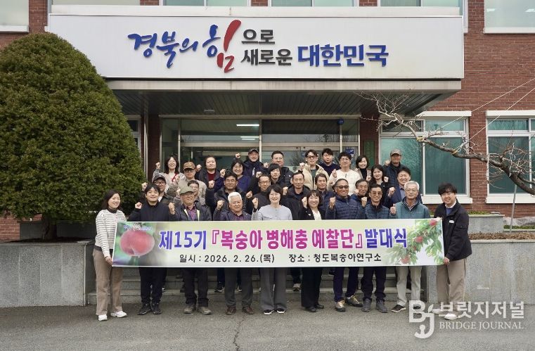 브릿지저널 정보영 기자 | 경상북도농업기술원은 26일 청도복숭아연구소에서 복숭아 주산지 10개 시군(청도, 영천, 경산 등)에서 선발된‘2026년 복숭아 병해충 예찰단’ 발대식을 열고 본격 활동에 들어간다고 밝혔다.