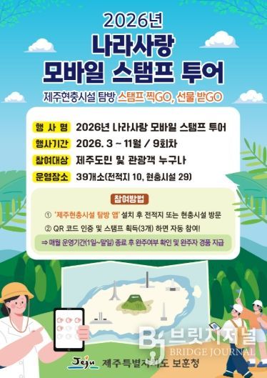 브릿지저널 정보영 기자 | 제주특별자치도 보훈청은 오는 3월부터 11월까지 모바일 앱을 활용해 도민과 관광객 누구나 참여할 수 있는 ‘2026 나라사랑 모바일 스탬프 투어’를 운영한다고 밝혔다.