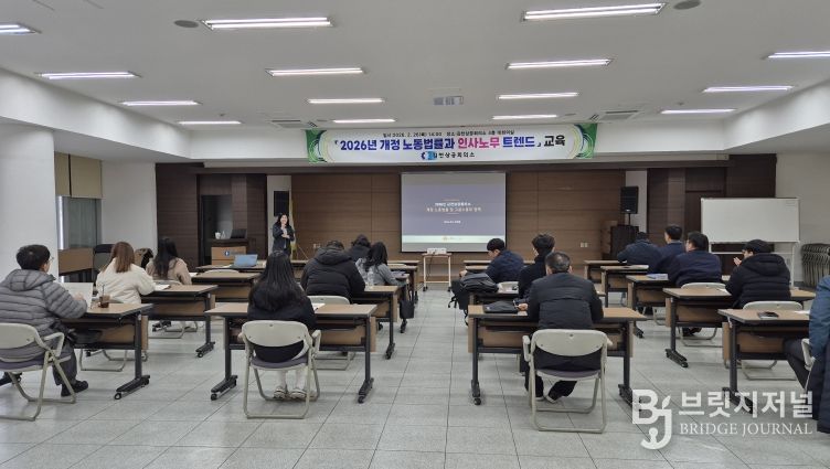 브릿지저널 정보영 기자 | 김천상공회의소는 지난 2월 26일 본 회의소 4층 대회의실에서 '2026년 개정노동법률과 인사노무 트렌드'교육을 진행했다.