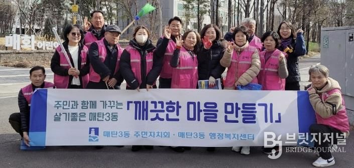 브릿지저널 김경미 기자 | 수원시 영통구 매탄3동은 지난 26일 매탄3동 주민자치회와 2026년 '깨끗한 마을만들기'사업의 일환으로 1분기 관내 환경정비 활동을 실시했다.