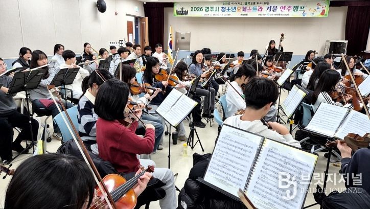 브릿지저널 정보영 기자 | 경주시는 청소년 문화예술 역량 강화와 건전한 청소년 문화 조성을 위해 지난 25일부터 27일까지 2박 3일간 화랑마을 화백관에서 ‘소리로 이어지고, 음악으로 하나 되는 以音知音’을 주제로 청소년오케스트라 겨울 연주캠프를 성공적으로 마무리했다고 밝혔다.