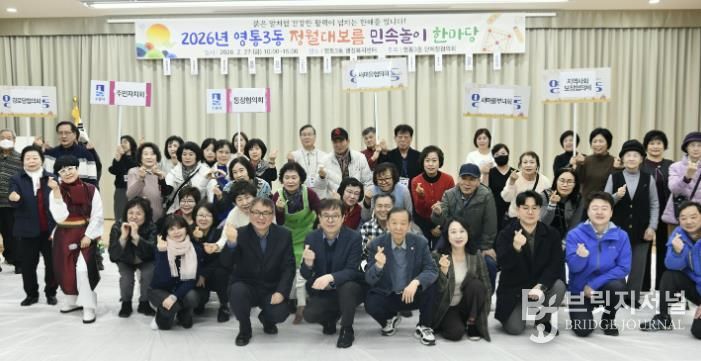 브릿지저널 김경미 기자 | 영통구 영통 3동은 지난 27일 영통3동 단체장협의회가 영통3동 행정복지센터에서 “2026년 영통3동 정월대보름맞이 민속놀이 한마당”을 성황리에 개최했다고 밝혔다.