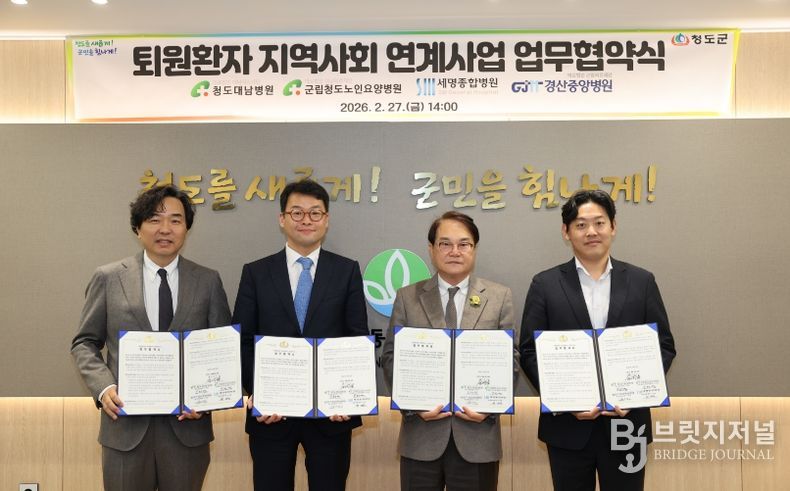 브릿지저널 정보영 기자 | 청도군은 27일 오후 2시 군수실에서 관내·인근 의료기관과 '통합돌봄 퇴원환자 지역사회 연계사업' 추진을 위한 업무협약을 체결했다.