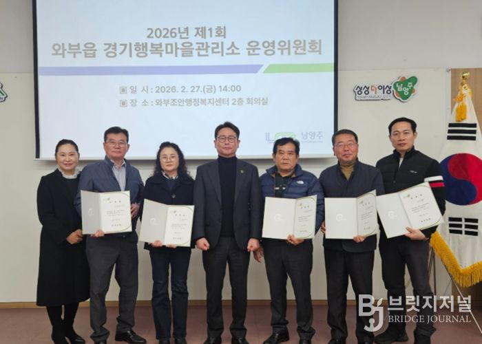 브릿지저널 김경미 기자 | 남양주시는 27일 와부조안행정복지센터 2층 회의실에서 와부읍 경기행복마을관리소 운영위원회 위원을 위촉하며 올해 첫 회의를 개최했다고 밝혔다.