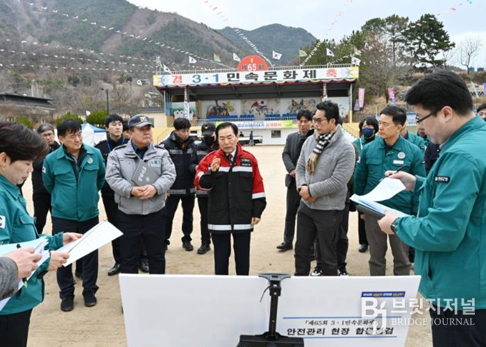 성낙인 군수는 “이번 안전점검을 통해 3․1민속문화제를 찾는 방문객들이 안전하고 쾌적한 환경에서 축제를 즐길 수 있도록 철저히 준비하겠다”며 “축제 기간 빈틈없는 안전관리로 단 한 건의 안전사고도 발생하지 않도록 최선을 다하겠다”고 말했다.