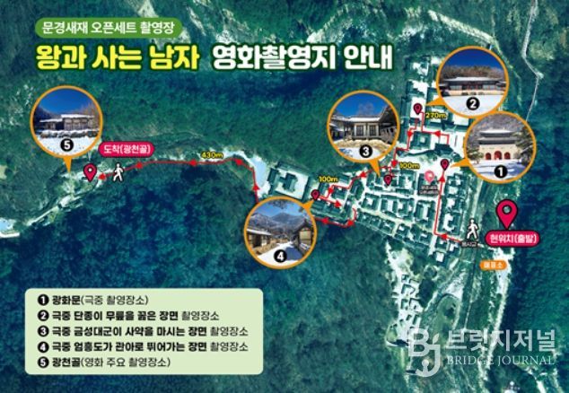 문경새재관리사무소는 오픈세트장 내부에 영화 '왕과 사는 남자'의 주요 촬영 포인트를 안내하고자 대형 안내도를 설치했다. 이와 함께 배부되는 안내 리플릿에는 각 지점에 대한 실제 현장 사진이 담겨 있어, 방문객들이 영화 속 분위기를 직접 확인하며 정확한 위치에서 인증샷을 남길 수 있도록 배려했다.