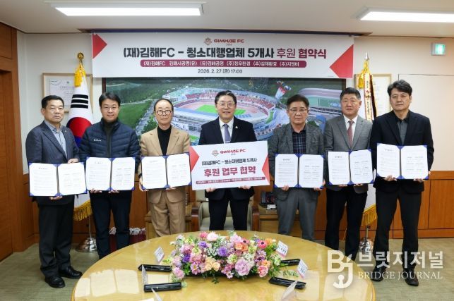 김해FC는 27일, 김해시 청소대행업체 5개사와 구단 후원을 위한 업무 협약을 체결했다고 밝혔다. 이번 협약에 참여한 업체는 ▲김해시공영(유) ▲(유)김해공영 ▲㈜정우환경 ▲㈜김해환경 ▲㈜지엔비로, 후원금은 김해FC 운영 및 경기 활동 전반에 사용될 예정이다.