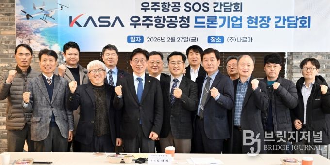 브릿지저널 김경미 기자 | 우주항공청은 우주항공 산업 현장의 목소리를 직접 듣고 실질적인 해결책을 모색하기 위해 '우주항공 SOS(aeroSpace On-site Solution) 간담회'의 첫 번째 순서로 대전 지역의 중소기업 ‘나르마’에서 드론 산업 분야를 주제로 2월 27일 개최했다.