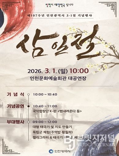 브릿지저널 김경미 기자 | 인천광역시는 3월 1일 오전 10시, 인천문화예술회관 대공연장에서 제107주년 3·1절 기념행사를 개최했다고 밝혔다.