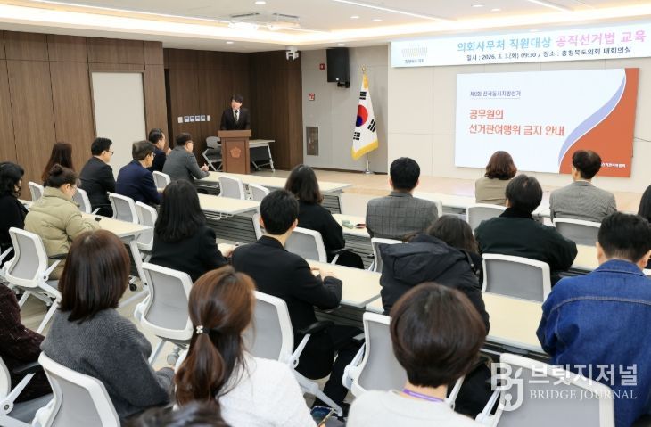 브릿지저널 김경미 기자 | 충북도의회는 3일 도의회 대회의실에서 사무처 직원을 대상으로 지방선거 대비 공직선거법 교육을 실시했다.