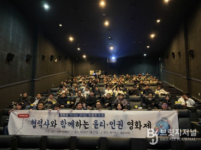 브릿지저널 정보영 기자 | 제주삼다수를 생산·유통하는 제주특별자치도개발공사(사장 백경훈)는 지난 27일 메가박스 제주아라점에서 운송 협력사와 함께하는 ‘윤리·인권 영화제’를 개최했다.