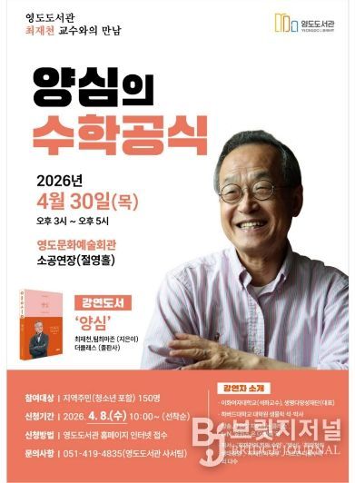 강연 참여 신청은 4월 8일 오전 10시부터 영도도서관 홈페이지를 통해 온라인으로 선착순 접수하며, 자세한 내용은 영도도서관 문의 또는 홈페이지 공지사항을 통해 확인할 수 있다.