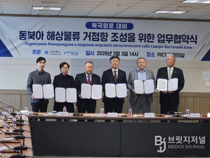 브릿지저널 정보영 기자 | 경상북도는 2026년 3월 3일 포항영일신항만 주식회사(PICT) 대회의실에서 북극항로 시대를 대비해 영일만항이 동북아 해상물류 거점항만으로 발돋움하기 위한 다자간 업무협약을 체결했다.