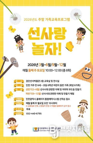 브릿지저널 김경미 기자 | 인천광역시 검단선사박물관은 2026년 새 학기를 맞아 가족이 함께 즐길 수 있는 주말 가족교육프로그램 '선사랑 놀자!'를 운영한다고 밝혔다.