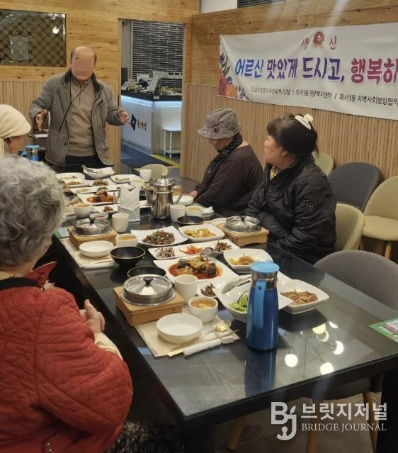 브릿지저널 김경미 기자 | 수원시 팔달구 화서1동은 지난 4일, 3월 생일을 맞이한 독거어르신 9명을 모시고 이교수한정식(대표 이태석)에서 '어르신 사랑의 생신상' 행사를 진행했다.