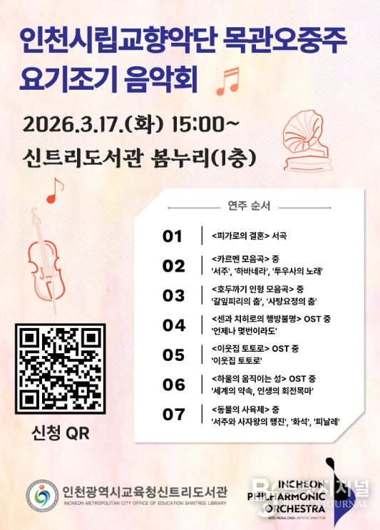 브릿지저널 김경미 기자 | 인천광역시교육청신트리도서관은 오는 17일 도서관 내 봄누리홀에서 지역 주민을 대상으로 ‘인천시립교향악단과 함께하는 해설이 있는 음악회’를 개최한다.