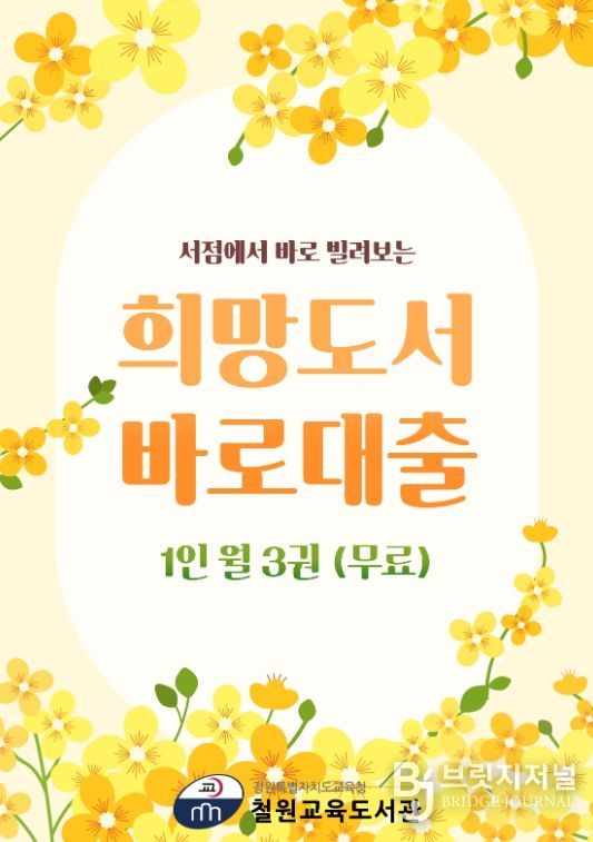 브릿지저널 윤나영 기자 | 철원교육도서관은 3월부터 철원 관내 지역 서점 2곳과 함께 ‘희망도서 서점 바로대출 서비스’를 운영한다.