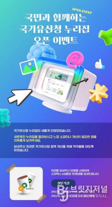 브릿지저널 김경미 기자 | 국가유산청은 국민들이 국가유산청의 정책정보를 쉽고 편리하게 이용할 수 있도록 누리집을 개편하고, 이를 알리기 위한 대국민 이벤트를 개최한다.