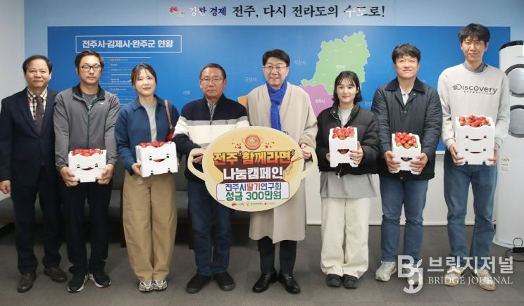 이날 기탁된 성금은 딸기연구회 소속 53명의 회원이 어려운 이웃과 소외된 이웃을 돕고자 하는 뜻을 모아 마련한 것으로, 전북사회복지 공동모금회를 통해 ‘전주 함께라면’ 사업 운영을 위해 사용될 예정이다.