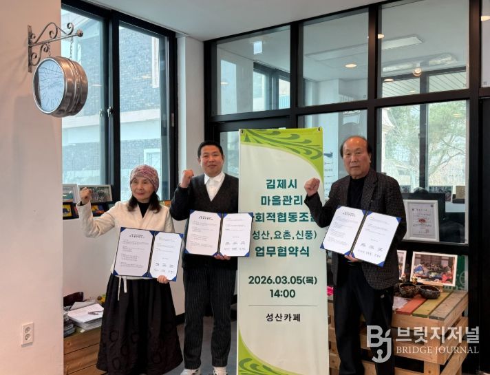 브릿지저널 윤나영 기자 | 김제시는 마을관리사회적협동조합 3개소가 지난 5일 상호 협력 강화를 위한 업무협약(MOU)을 체결하고 지역사회에 기반한 도시재생 상생 네트워크 구축에 나섰다고 밝혔다.