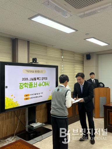 브릿지저널 김경미 기자 | 단양교육지원청은 6일 지원청 2층 소회의실에서 2026년 서상렬특지장학회 장학생 12명에게 장학증서를 전달했다.