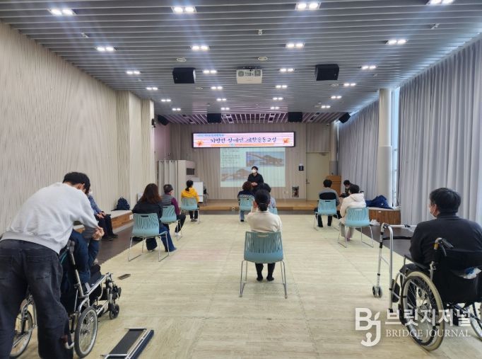 브릿지저널 윤나영 기자 | 울산 북구보건소는 6일 북구장애인복지관에서 등록 장애인을 대상으로 뇌병변장애인 재활운동교실을 열었다.