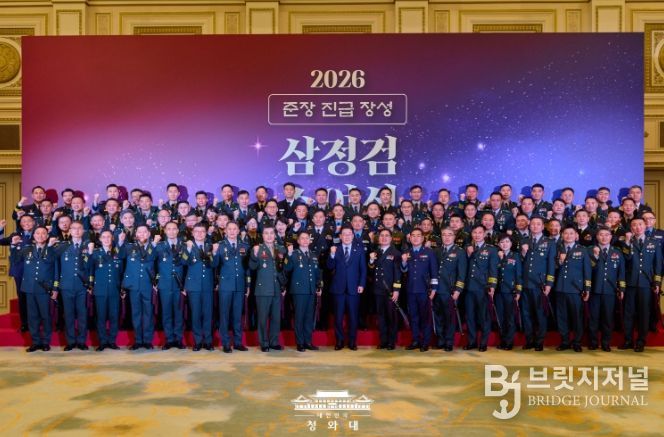브릿지저널 김경미 기자 | 이재명 대통령은 오늘 오후 청와대 영빈관에서 개최된 ‘26년 준장 진급자 삼정검 수여식 행사에 참석해 총 77명의 준장 진급자들에게 삼정검을 수여했다.