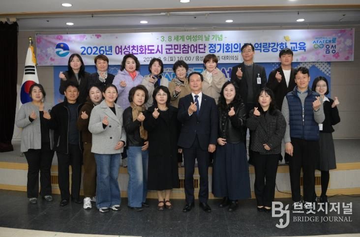 브릿지저널 김경미 기자 | 음성군은 9일 군청 대회의실에서 3월 8일 ‘세계 여성의 날’을 기념해 여성친화도시 군민참여단 정기회의 및 역량 강화 교육을 개최했다고 밝혔다.