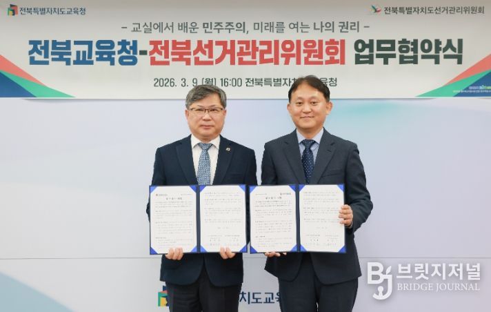 브릿지저널 윤나영 기자 | 전북특별자치도교육청이 학생 선거교육 및 민주시민교육 활성화를 위해 전북특별자치도선거관리위원회와 협력 체계를 구축한다.