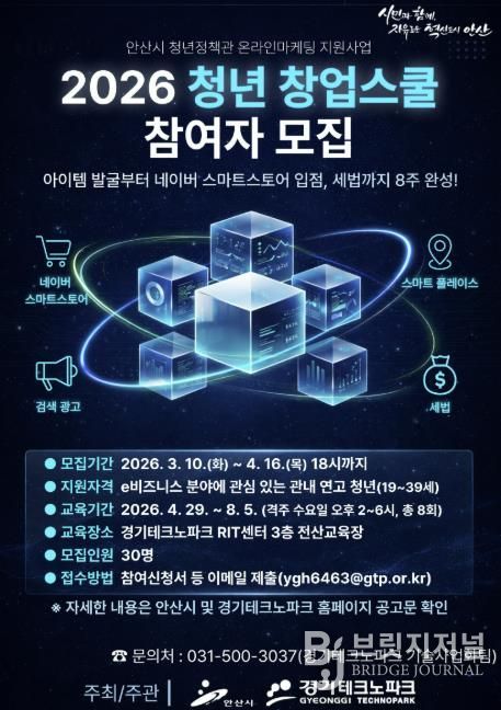브릿지저널 김경미 기자 | 안산시는 e비즈니스 분야 청년 창업자의 안정적인 시장 진입과 사업 운영을 지원하기 위해 ‘청년 창업스쿨’ 참여자를 모집한다고 10일 밝혔다.