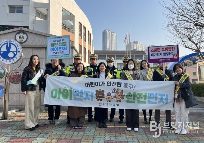 브릿지저널 윤나영 기자 | 울산 동구는 3월 10일 화암초등학교 및 문현초등학교 일원에서 어린이들의 안전한 보행환경 조성을 위한 교통지도와 함께 ‘아이 먼저’ 교통 안전 캠페인‘을 했다.