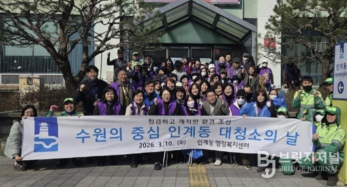 브릿지저널 김경미 기자 | 수원시 팔달구 인계동은 지난 10일 오후, 다가오는 봄을 맞아 관내 유동 인구가 많은 수원시청 부근 인계박스 및 장다리로 일대 등 화단과 대로변을 중심으로 ‘새봄맞이 일제 대청소’를 실시했다.