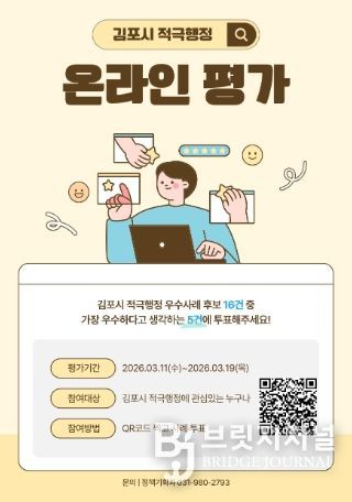 브릿지저널 김경미 기자 | 김포시는 3월 11일부터 3월 19일까지 ‘2026년 제1차 적극행정 우수공무원 선발’을 위한 온라인 평가를 진행한다.