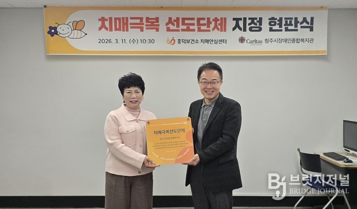 브릿지저널 김경미 기자 | 청주시 흥덕보건소 치매안심센터는 11일 청주시장애인종합복지관에서 치매극복선도단체 지정 현판식을 개최했다.