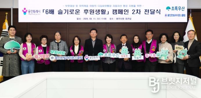 브릿지저널 김경미 기자 | 용인특례시는 11일 시청 접견실에서 초록우산 어린이재단 경기1지역본부와 용인한빛라이온스클럽과 함께 ‘디딤씨앗통장 활성화를 위한 후원금 전달식’을 개최했다고 밝혔다.