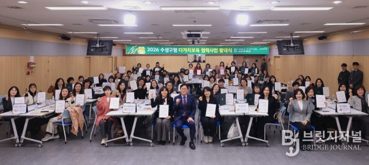 브릿지저널 김진석 기자 | 대구 수성구는 지난 11일 구청 대강당에서 어린이집 간 협력과 상생을 통한 보육환경 개선을 위해 ‘2026년 수성구형 다가치보육 협력사업 발대식’을 개최했다.