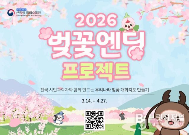 브릿지저널 김경미 기자 | 산림청 국립수목원은 2026년 봄 벚나무 개화 시기에 맞춰 시민과학 참여 프로그램인 '벚꽃엔딩 프로젝트'를 운영한다.