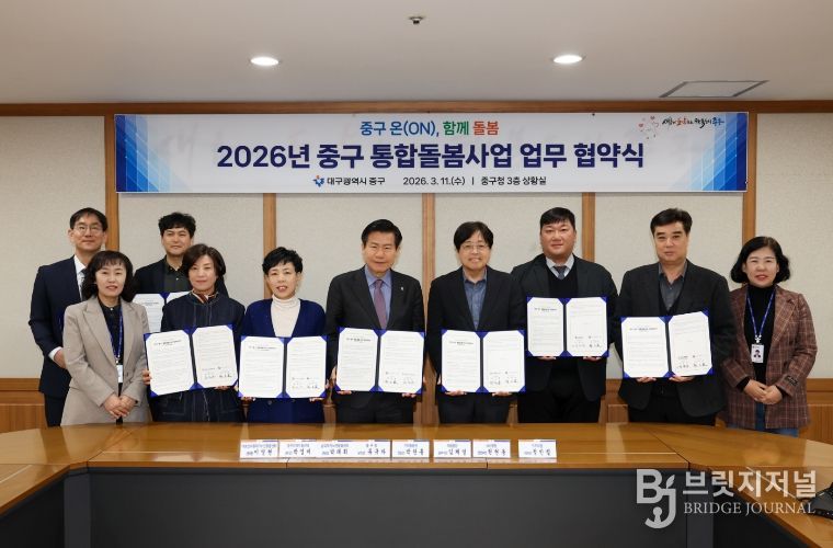 브릿지저널 김진석 기자 | 대구 중구는 지난 11일 구청 상황실에서 ‘중구 온(ON), 함께 돌봄’ 통합돌봄 지역특화사업의 안정적 추진을 위해 관내 7개 기관과 업무협약을 체결하고, 민·관 협력 기반의 지역 통합 돌봄 체계 구축에 나섰다.