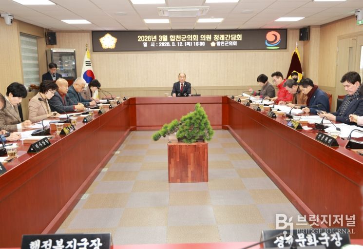 브릿지저널 김경미 기자 | 합천군의회는 12일 합천군의회 간담회장에서 2026년 3월 합천군의회 의원 정례간담회를 개최했다고 전했다.