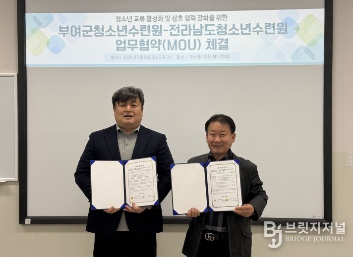 브릿지저널 김경미 기자 | 전라남도청소년수련원(원장 이춘복)은 부여군청소년수련원과 상호 교류 및 협력 강화를 위한 업무협약(MOU)을 체결했다고 밝혔다.