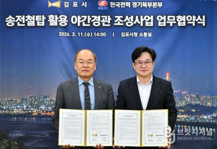 브릿지저널 김경미 기자 | 김포시와 한국전력공사 경기북부본부가 11일 ‘송전철탑 활용 야간경관 조성사업’ 추진을 위한 업무협약을 체결했다. 이번 협약은 송전철탑을 활용한 야간경관 랜드마크 조성을 통해 도시 환경과 전력 설비에 대한 이미지를 개선하고 시민들에게 새로운 볼거리를 제공하기 위해 마련됐다.