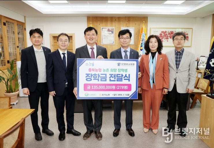 브릿지저널 김경미 기자 | 충청북도교육청은 13일, 충북농협(본부장 이용선)이 지원한 농촌지역 학생 대상 희망 장학금 전달식을 개최했다.