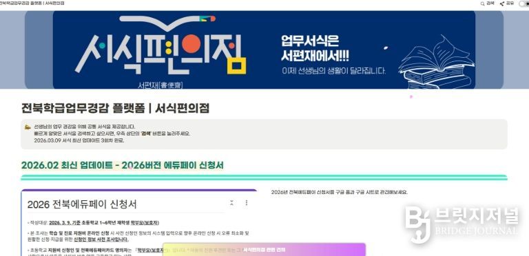 브릿지저널 윤나영 기자 | 전북특별자치도교육청이 교사 행정업무 경감을 위해 운영하는 ‘AI 서식편의점’의 기능 및 편리성을 한층 강화한다.