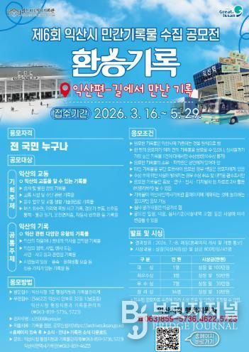 익산시는 오는 16일부터 5월 29일까지 '제6회 익산시 민간기록물 수집 공모전'을 개최한다.